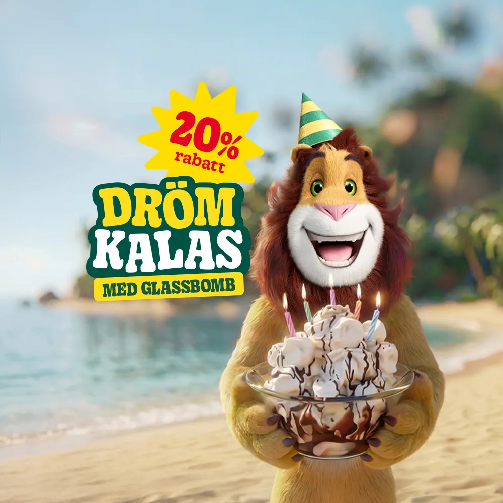 Dags för kalas! Nu får du Drömkalaset med Glassbomb till 20% rabatt. Skynda att boka!