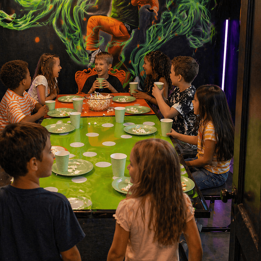 Discorummet blir en naturlig samlingsplats under kalaset. Här samlas ni före, under eller i slutet av leken – pratar, umgås och är tillsammans mellan allt som händer.